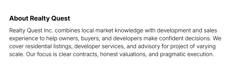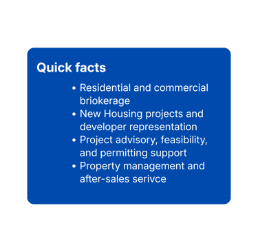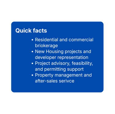 We help owners. buyers, developers, and investors through sales, project development, and property management. Clear advices, commercial sense, and results you can measure,